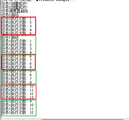 task1:通过串口打印task1的运行次数,设置任务优先级为2。